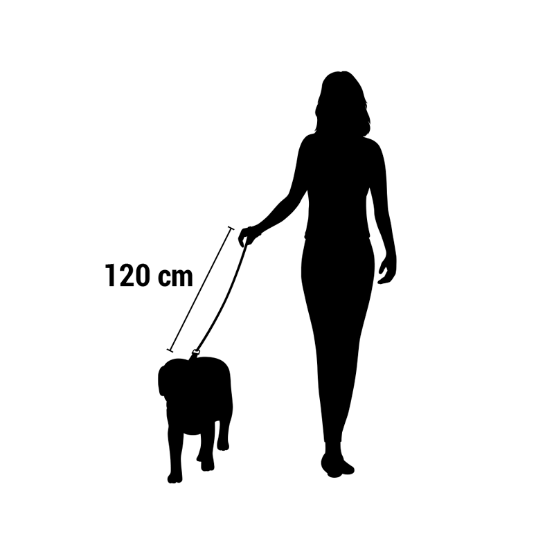 Con una longitud de 120 cm, ofrece un control ideal durante los paseos, asegurando que tu compañero peludo esté siempre a tu lado.