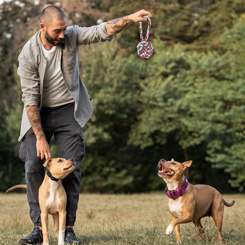 Los juguetes para perros contienen fibra de algodón gruesa, que puede eliminar la suciedad de la superficie de los dientes de los perros. Las mascotas también tienen el efecto de cepillarse los dientes mientras juegan, lo que ayuda a prevenir las caries y es bueno para la salud dental.