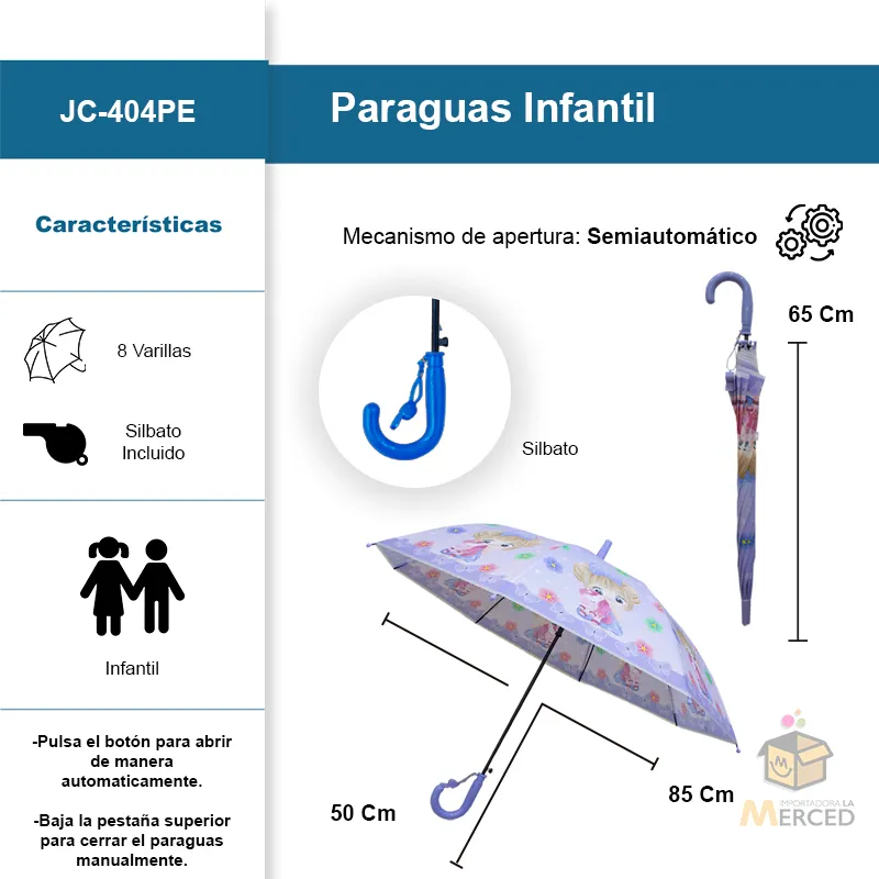 Paraguas Infantil con Mecanismo Semiautomático e Incluye Silbato