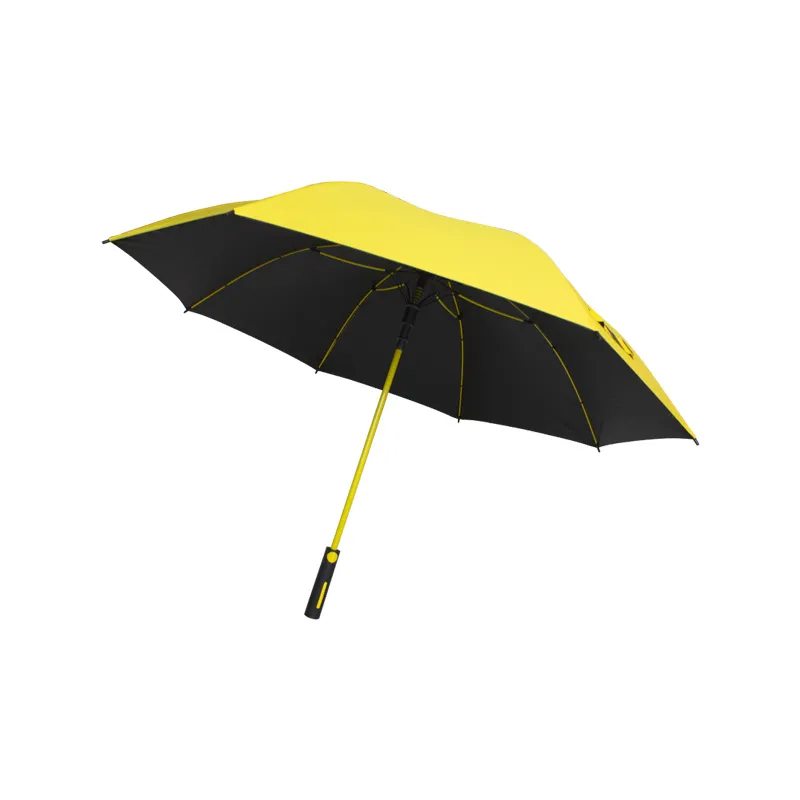 Este paraguas esta creado en un material repelente al agua de alta densidad además de contar con unas varillas de color super flexibles. Su mango es ergonómico ya que está hecho de un material se plástico mate que es ideal para un mejor agarre. Con una estructura tradicional pero resistente ya que tiene 8 varillas flexibles ideal contra el viento.