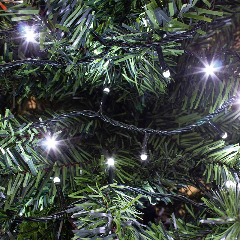 Su cable verde permite que las luces se integren de manera armoniosa en cualquier decoración, destacando la belleza de cada espacio.