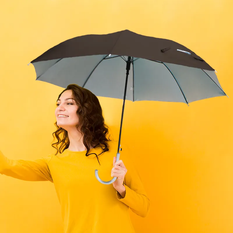 Además, cuenta con recubrimiento especial con protección UV, perfecto para protegerte también del sol en los días calurosos. Ya sea bajo la lluvia o el sol, esta sombrilla es tu compañero ideal durante todo el año.