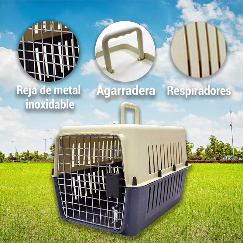 Esta transportadora es para animalitos de tamaño pequeño. La parte de arriba es de color beige, mientras que la parte de abajo es de color rosa, al igual que la rejilla es de color plateada. Tu amigo peludo estará cómodo y seguro en este transportador que le ofrece perfecta una ventilación, con orificios a los lados, así como a través de la reja. Cuenta con una agarradera en la parte superior para mayor y mejor movilidad.